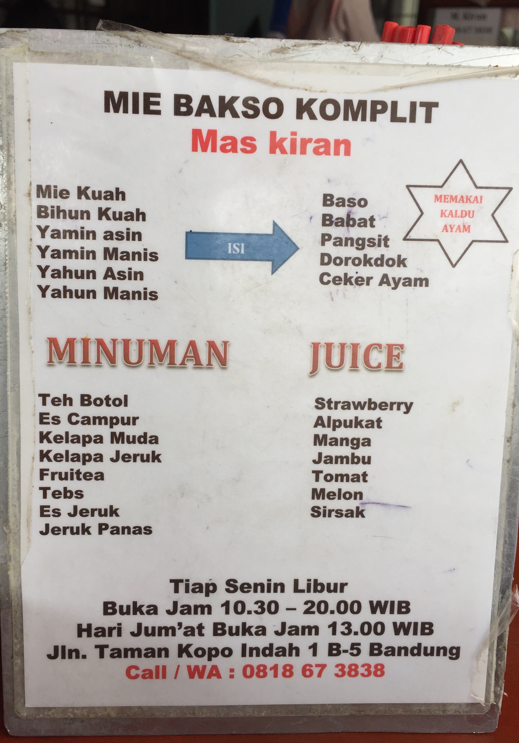 Kalau ngaku pecinta bakso dan lagi main ke Bandung harus banget cobain mie bakso Mas Kiran yang berlokasi di komplek Taman Kopo Indah 1 (TKI 1).