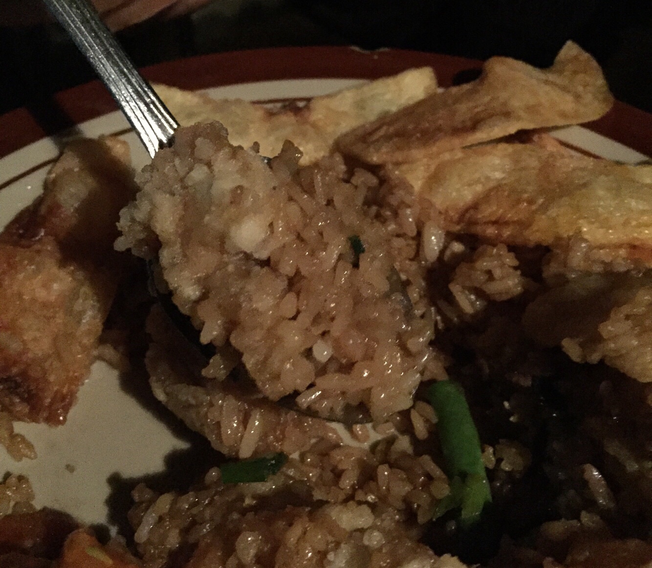 Nasi gorengnya ini tipikal nasi goreng kecap versi rumahan. Kalau nasi goreng abang-abang yang lewat atau yang mangkal tuh rasanya beda, kayak dari tekstur nasinya yang be’ar (nasi agak kering dan tidak pulen/menggumpal), terus bumbunya yang khas seperti ada tambahan kemiri, juga kecap merk tertentu.