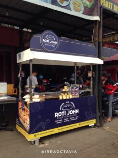 Lokasi Roti John ini terletak di halaman depan sebuah cafe (lupa namanya) berdampingan dengan JNE Mekar Wangi. Disampingnya ada banyak jajanan lainnya, ada Thai Tea Hayang Tea juga lho di sini. Kalau kalian main ke komplek Mekar Wangi, di sini udah jadi tempat nongkrong sore-sore. Terbukti dari banyaknya jajanan enak dan murah-murah. Kalau mau cari Roti John ini search aja JNE Mekar Wangi di Google, nah disitu tempatnya.