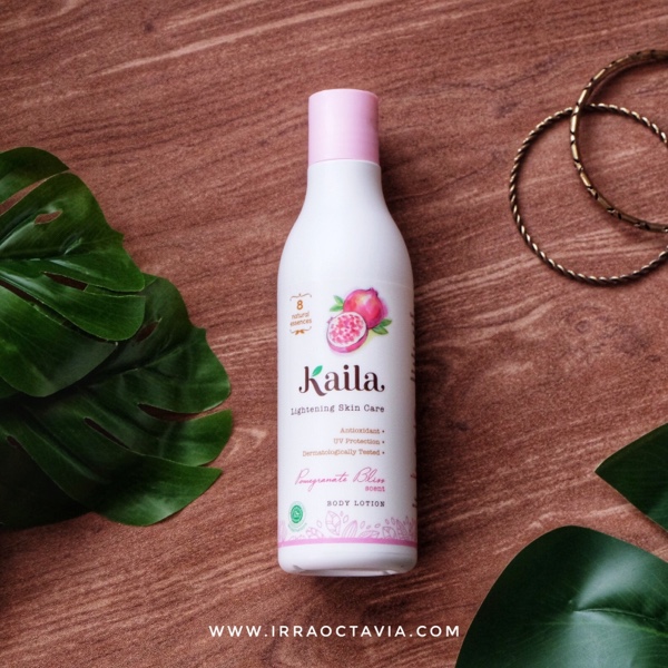 Kaila Skin Care Lightening Body Lotion merupakan body lotion yang memiliki 8 kandungan essential alami seperti seaweed, macadamia, calendula, chamomile, wheat, avocado, jojoba dan yam bean yang berfungsi untuk membantu melembabkan, melembutkan dan mencerahkan kulit.